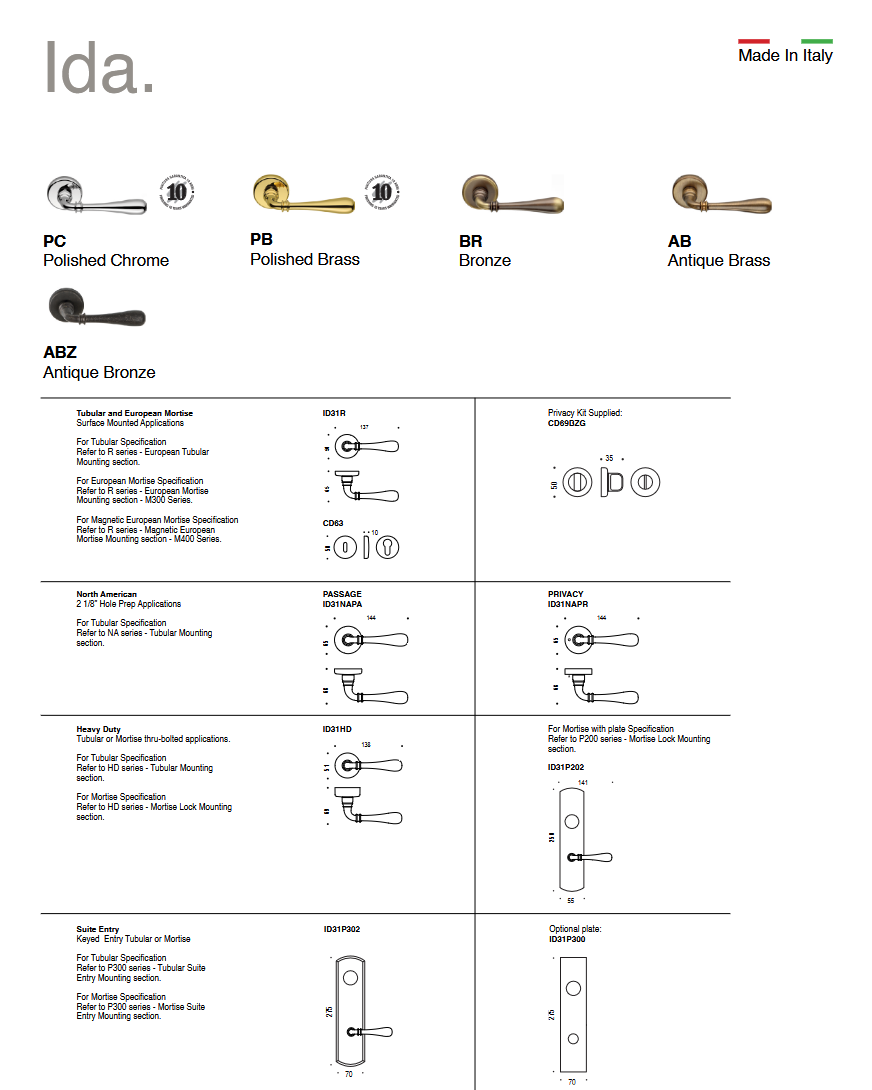 IDA – дверная ручка Итальянской фабрики COLOMBODESIGN (КОЛОМБО), европейского лидера известного... -